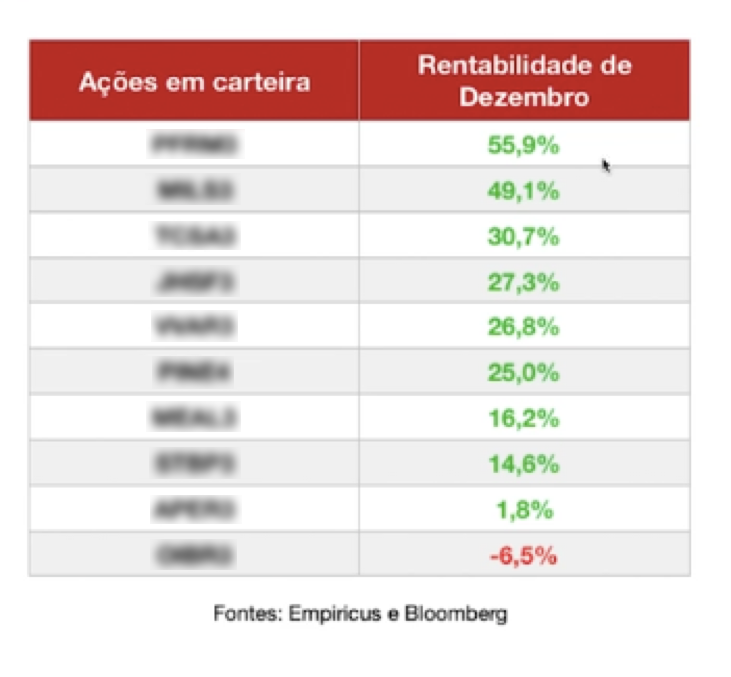Um mês antes, em novembro, essa mesma lista de ações havia batido o índice de forma assustadora...