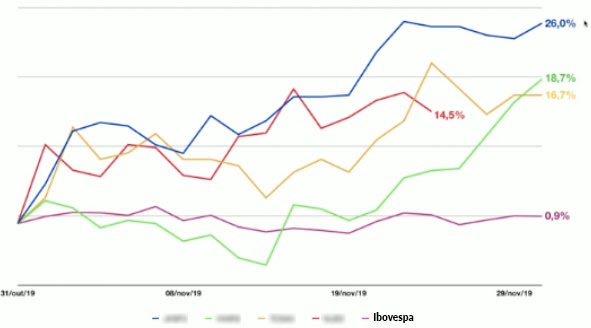 Houve ações com resultado mais expressivo, com 186%, 124% e 107% de lucros no período.