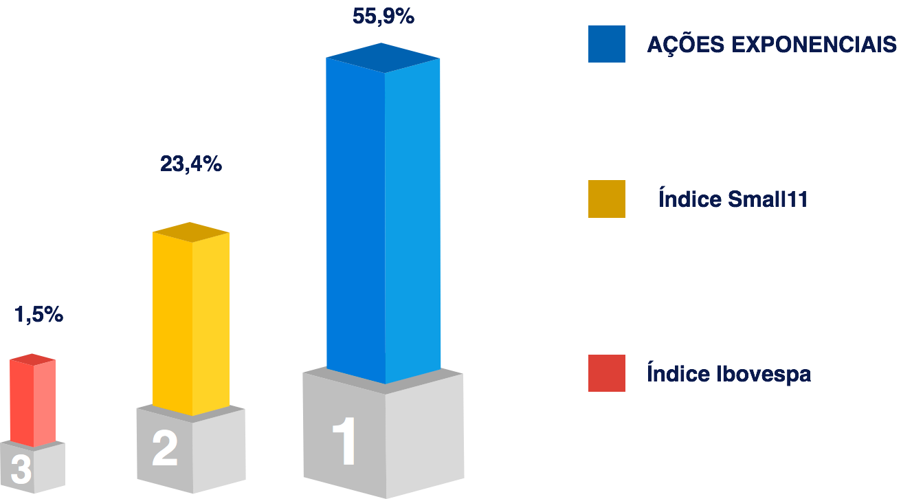 Meu conjunto de Ações Exponenciais está entregando, consistentemente, um retorno muito superior ao Ibovespa.