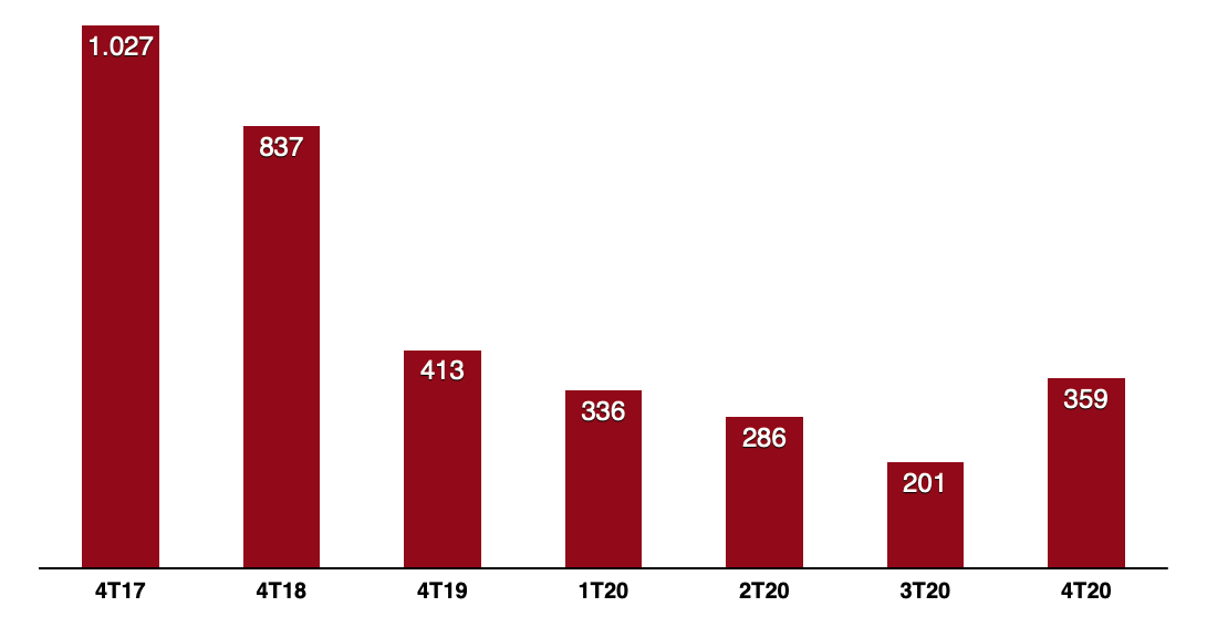 No final de 2020, último resultado divulgado, a empresa tinha R$ 300 milhões em caixa.