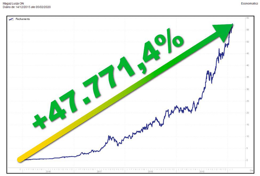 Em 5 anos, Magazine Luiza se multiplicou por 470 vezes. E sabe por quanto no ano passado? 20%.