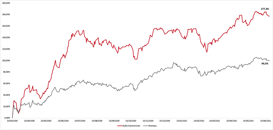 São ganhos já apurados, que já aconteceram. Então, você não vai mais ganhar dinheiro com essas Ações Exponenciais. Retorno passado não é garantia de retorno futuro.