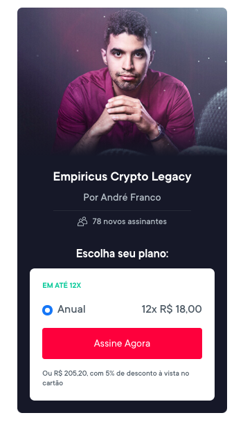Novos assinantes, ao entrarem para a série Crypto Legacy, pagam o valor abaixo.