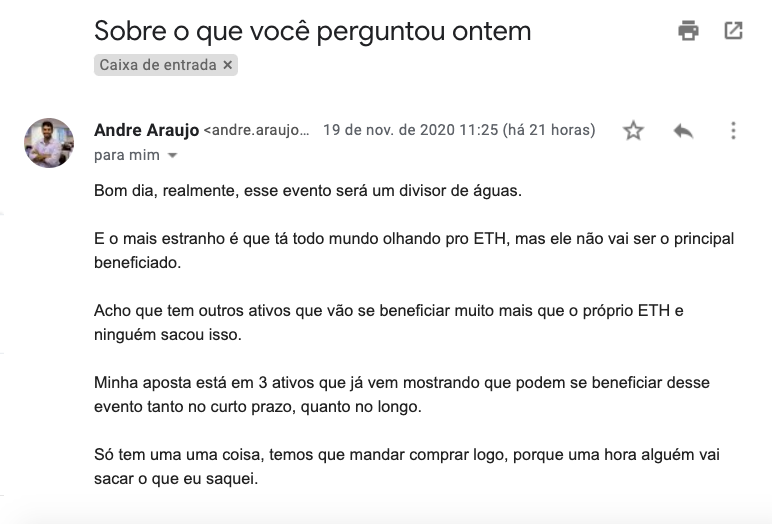 Além de saber a força que esse evento tem para fazer os preços desses ativos decolarem.