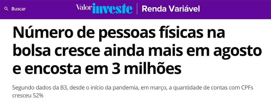 Hoje, são cerca de 3 milhões de brasileiros investindo na Bolsa de Valores.