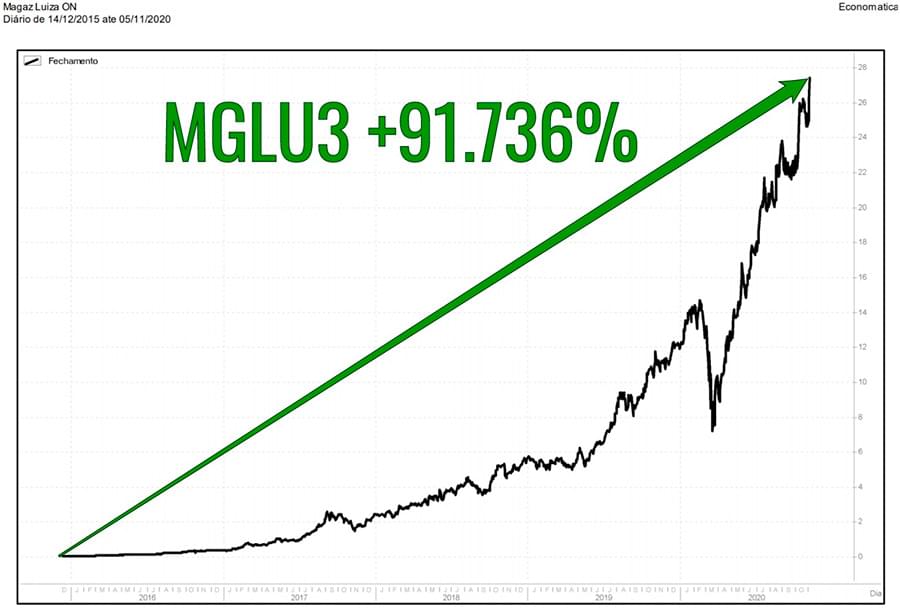 As ações da varejista Magazine Luiza valorizaram inacreditáveis +91.736% desde sua entrada na Bolsa.