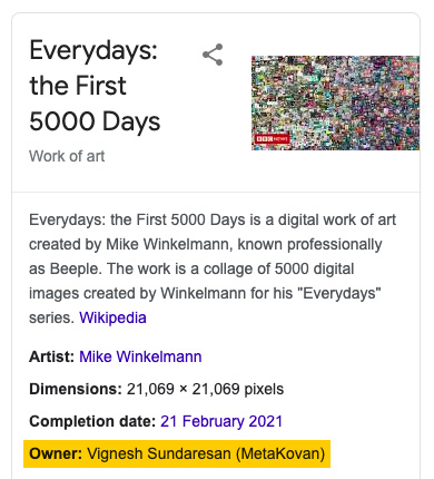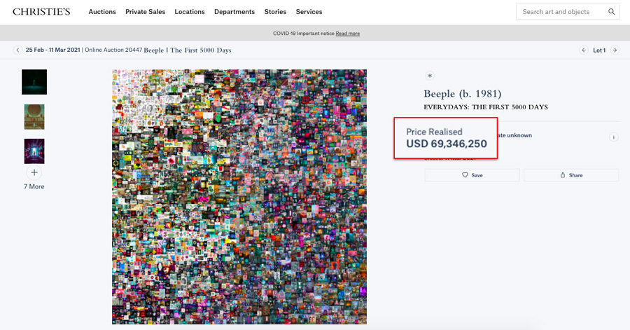 E se tornou a maior venda de uma obra digital já feita em toda a História.
