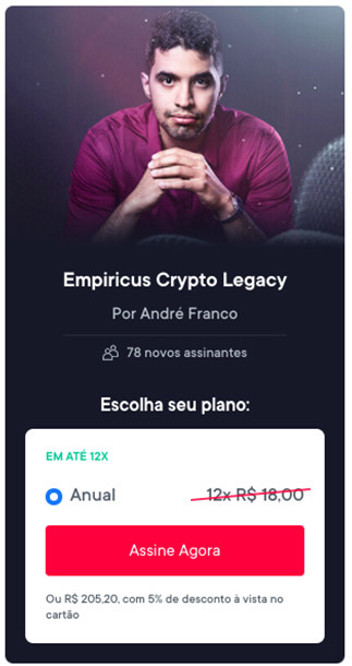 Para você ter uma ideia, para que novos assinantes entrem na Crypto Legacy, é cobrado o valor anunciado em nosso site.