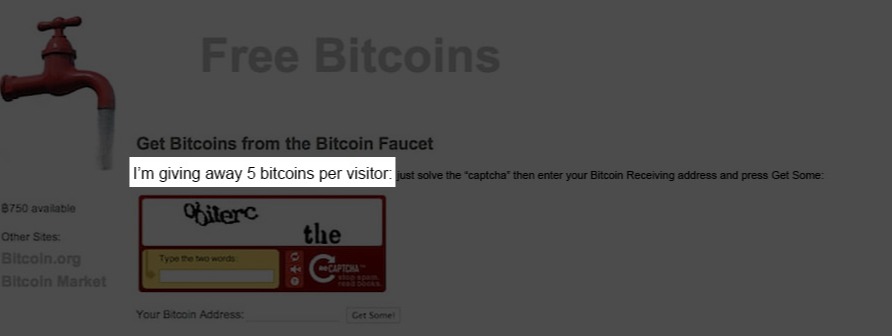 Tudo que você precisava fazer era acessar um site e resolver um captcha para ganhar 5 Bitcoins por vez, diretamente na sua carteira.