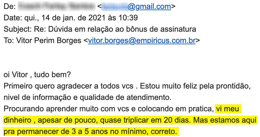 E também é importante salientar que esse mercado tem um risco, assim como todos os investimentos.