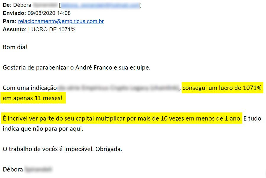 Hoje estou à frente do departamento de ativos digitais aqui na Empiricus, com uma carteira recomendada que já ultrapassa os 2.200% de lucros.