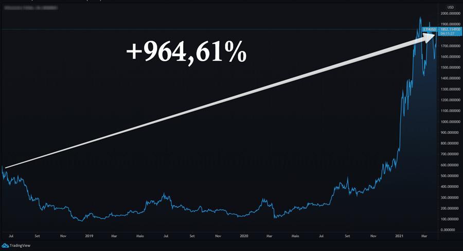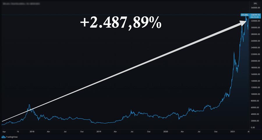 Todos os meus investimentos até 2020, até meados de 2020, eles renderam mais de 200% pelo menos. Mas eu guardo um aporte que foi feito em dezembro de 2018, no bear Market, quando o bitcoin estava valendo 3 mil dólares.