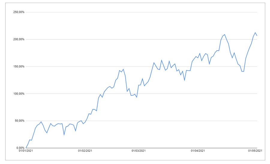 Só em 2020, a carteira teórica do Crypto Legacy rendeu +454,54% e, em 2021, ela também começou promissora, com ganhos de +206,3% até o momento.