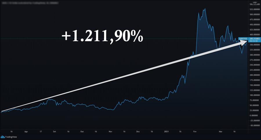Eu comprei 500 reais em bitcoins e hoje, em março de 2021, essa mesma quantidade de satoshis valem quase 12 mil reais. Ou seja, eles renderam mais de 2.000%."