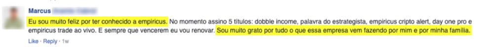 Resposta: Nossa companhia, a Empiricus, foi fundada dez anos atrás e hoje é simplesmente a maior empresa de publicações financeiras do Brasil.