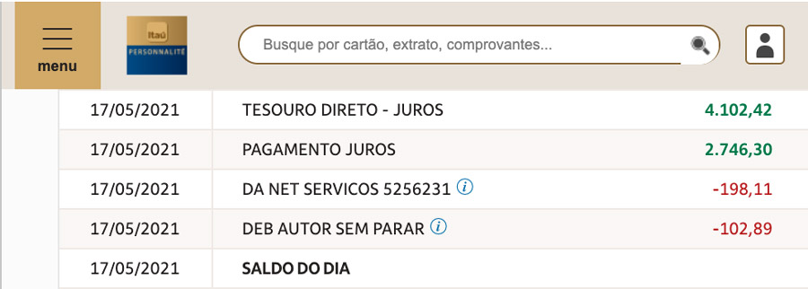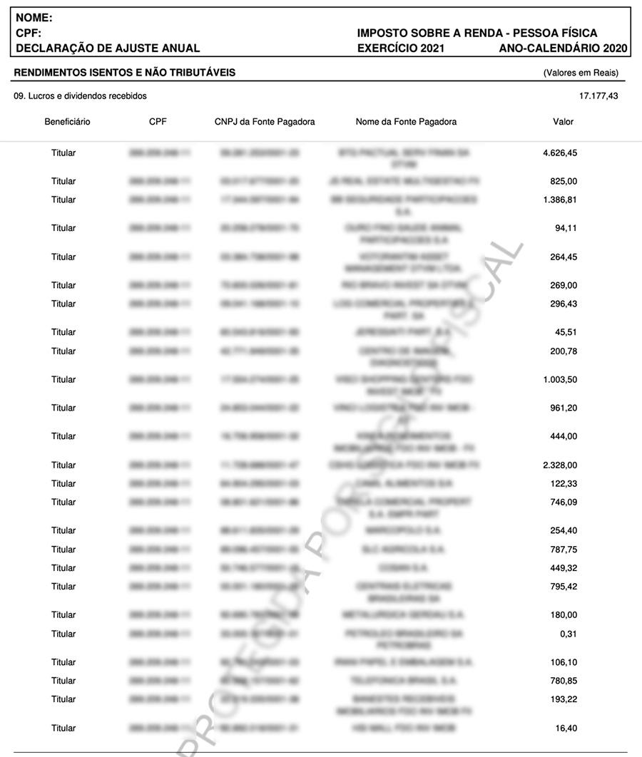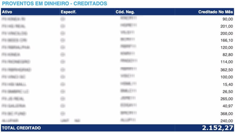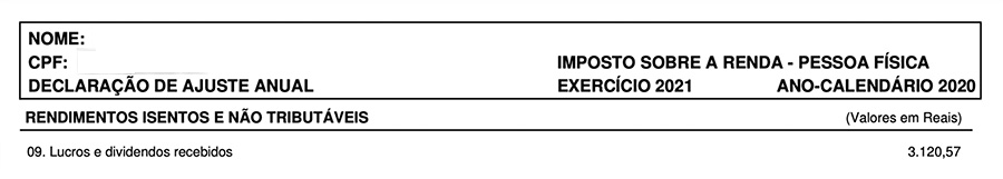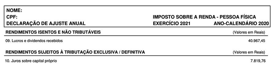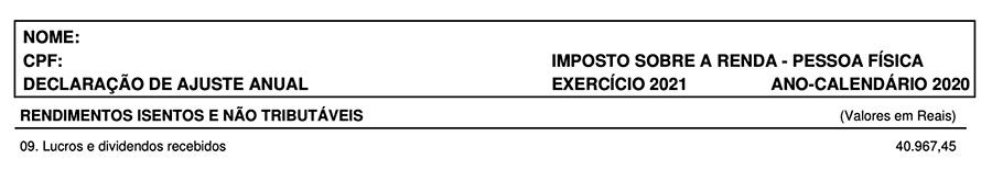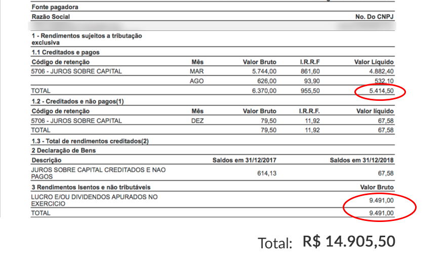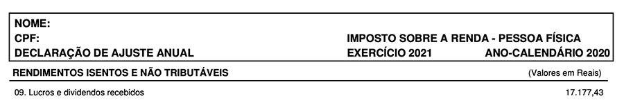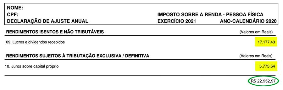 Somando tudo, estamos falando de mais de R$ 17 mil em "Lucros e Dividendos" e outros R$ 5.700 com "Juros sobre Capital Próprio".