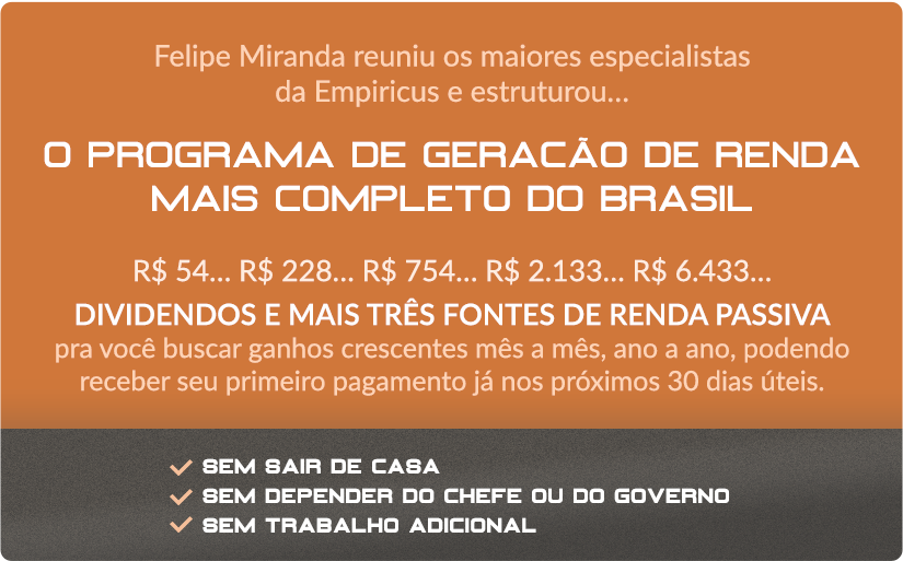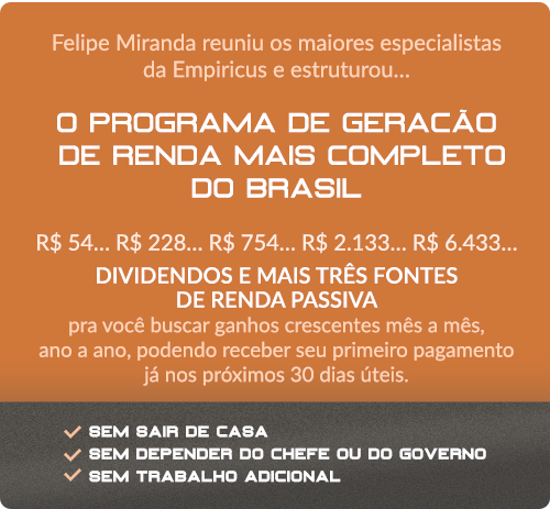 Eu vou te revelar agora como funciona o Programa de Geração de Renda da Empiricus, na minha opinião, o mais completo e consistente do Brasil.