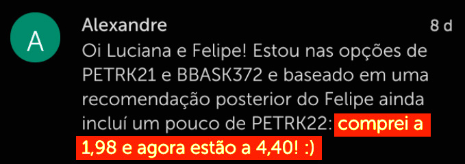 É por isso que eu insisto: aproveitar as oportunidades pontuais de entrada o mais rápido possível pode fazer toda a diferença no longo prazo.
