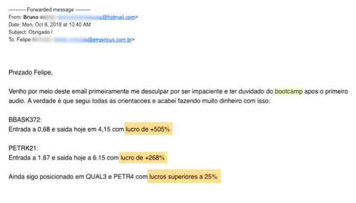 Se não, eu me comprometo a devolver integralmente o seu valor gasto conosco no Empiricus Absolute.