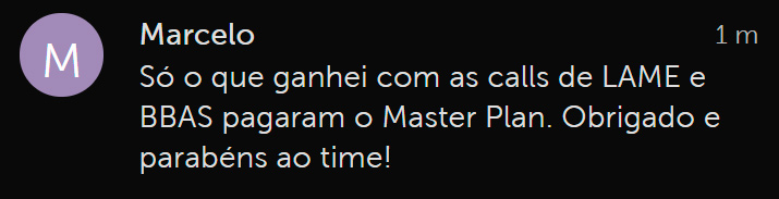 As oportunidades são tão brutais que pode acontecer com você o que aconteceu com o Marcelo, que com apenas dois calls, logo de cara pagou o valor do plano e o resto foi só lucro: