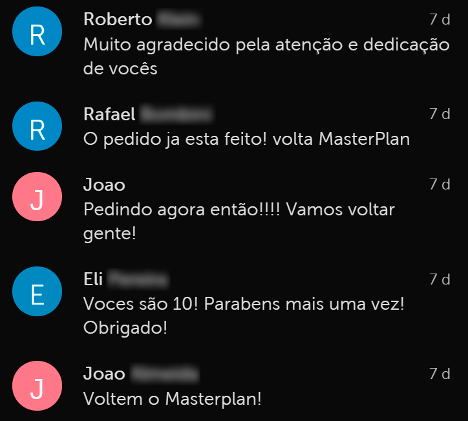 E é por isso que aqueles que participaram desses ganhos nos escrevem todos os dias pedindo a reabertura do MasterPlan: