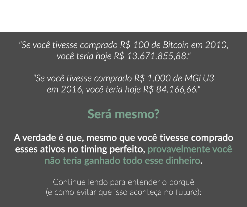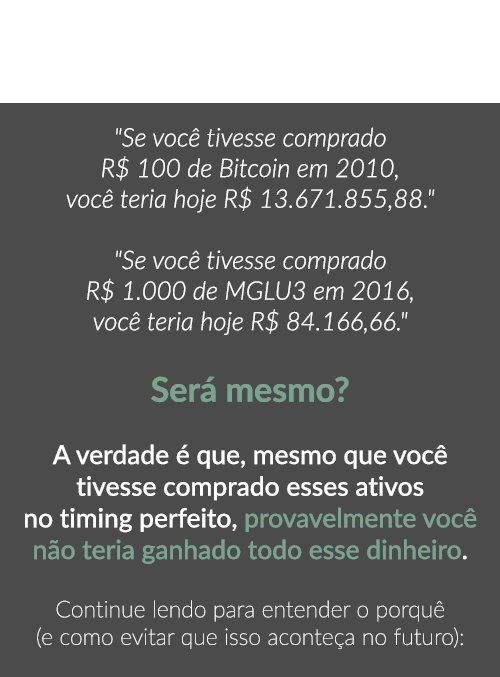 Eu quero te mostrar por que você provavelmente não ganharia todo esse dinheiro com esses ativos, mesmo que comprasse no timing perfeito.