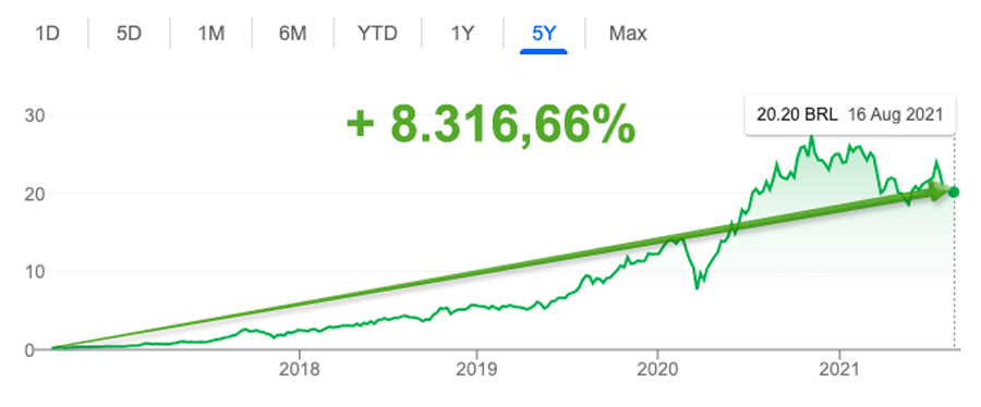 Um investimento de R$ 5.000 em 2016 teria se transformado em R$ 420.833,33.