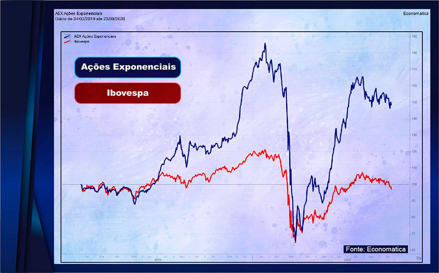 Em Ações Exponenciais, são empresas passando por situações especiais, como fusões, aquisições e reestruturação e que podem explodir em valorização subitamente.