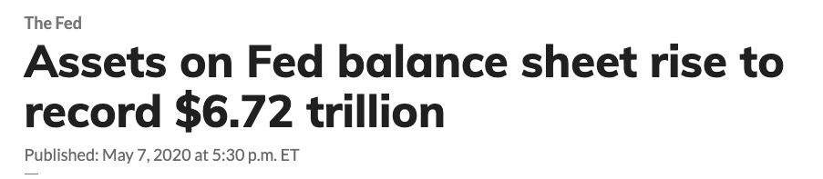 Com isso, o balanço do Federal Reserve explodiu, para inéditos US$ 6,72 trilhões, algo que nunca aconteceu antes.