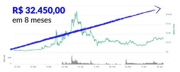 Um investimento de R$ 10 mil viraria R$ 850 mil em 12 meses.