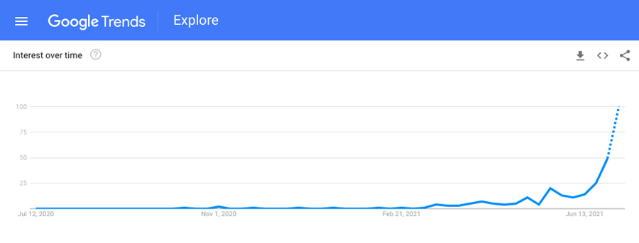 As buscas por essa moeda explodiram, e os pontilhados no gráfico são a prova disso.