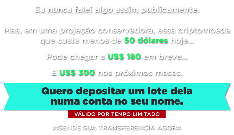 Para te provar o quanto eu acredito nesta moeda e no potencial de lucros que ela tem, eu não vou apenas depositá-la na sua conta...