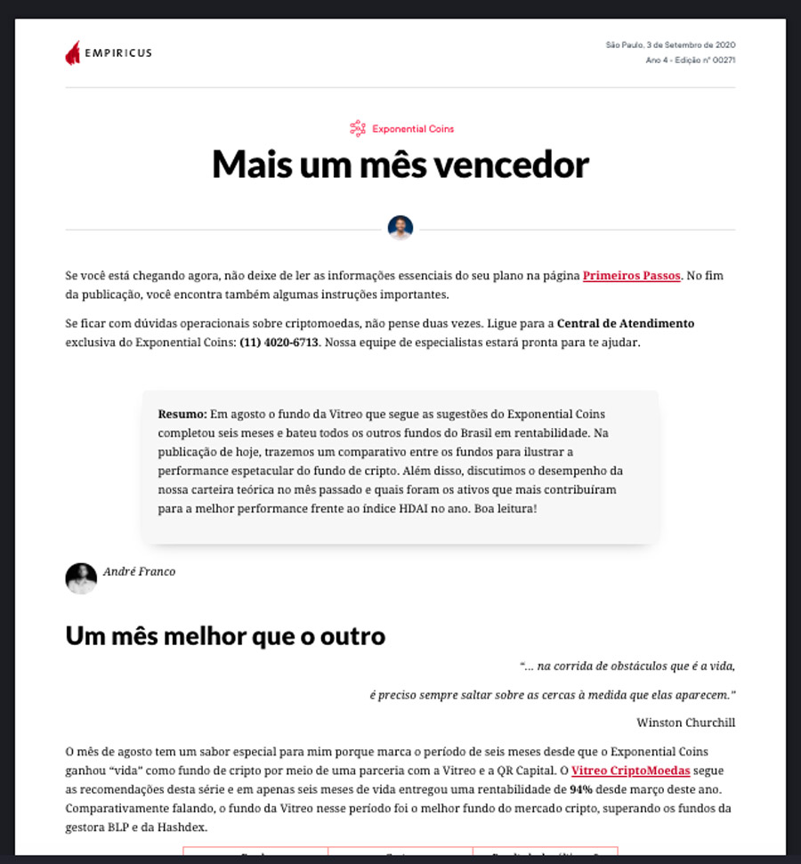 Para quem não me conhece, meu nome é André Franco, sou analista de criptomoedas aqui da Empiricus, a maior publicadora de conteúdo financeiro do Brasil.