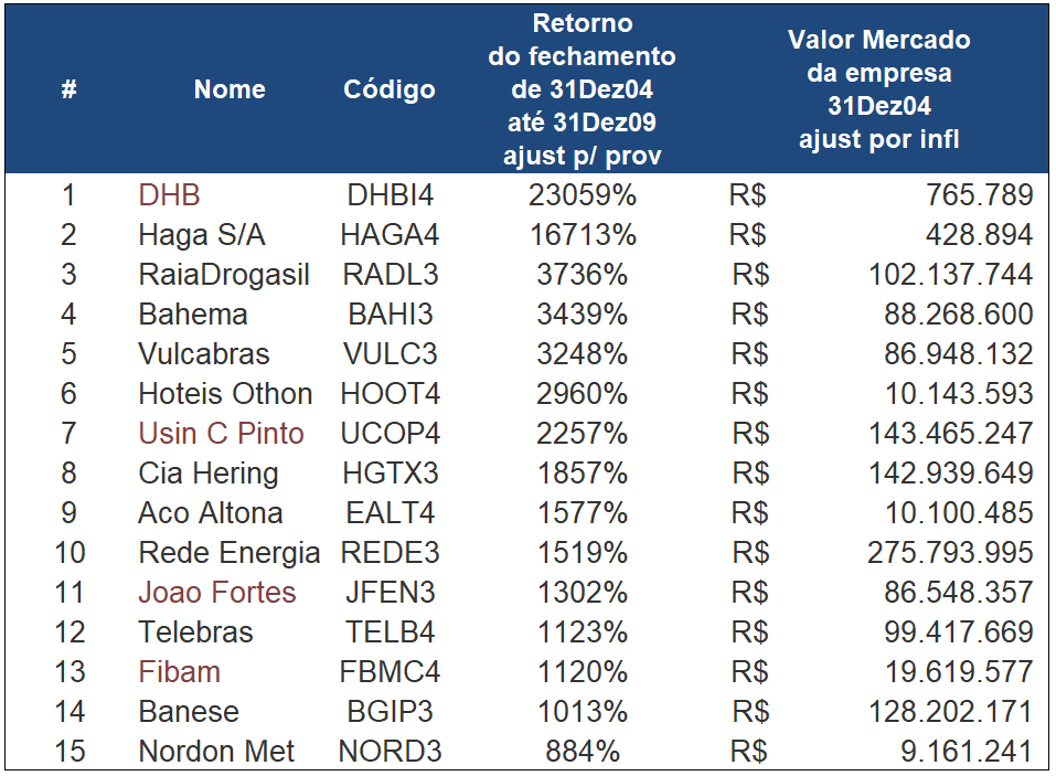 De 15 empresas, apenas 3 não eram microcaps.