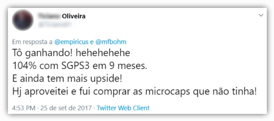 3) Nós fazemos uma seleção criteriosa de microcaps desde 2014 e estamos mais confiantes do que nunca