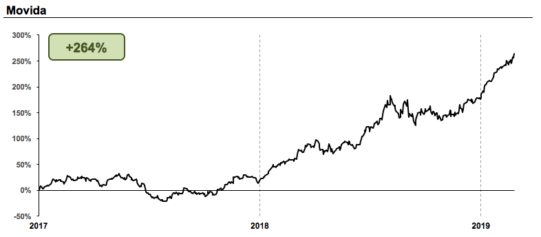 Movida (MOVI3); +250% de valorização em pouco mais de dois anos