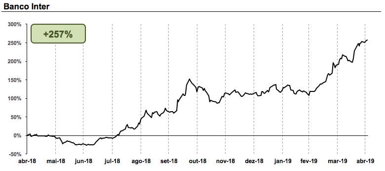 Banco Inter (BIDI4): valorização de 257% em um ano.