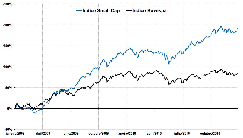 Veja esse gráfico do quanto as small caps andam em um cenário de bull market...