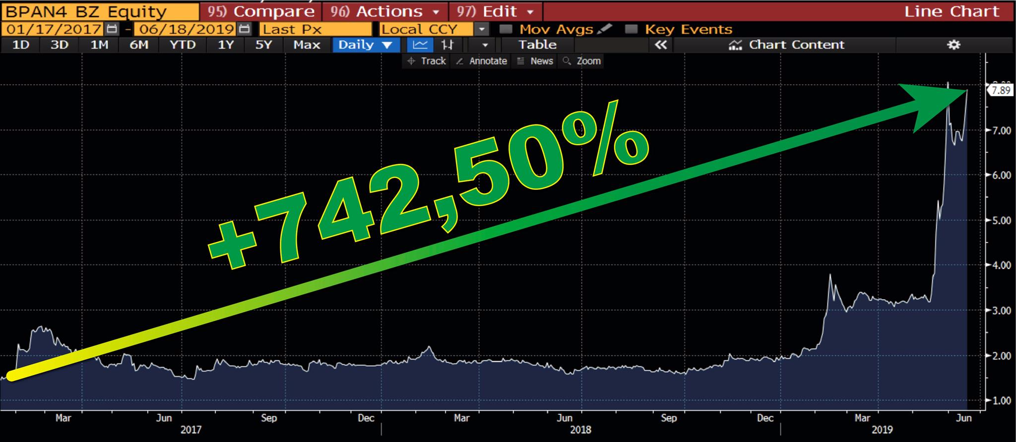 Adotando essa estratégia na prática, fui o primeiro especialista no mercado brasileiro a identificar o potencial das ações do Banco Pan (BPAN4) em 2017, quando elas valiam menos de R$ 1,50.
