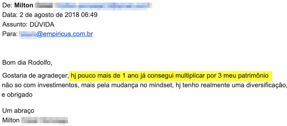 E no limite, temos casos como o do Milton, que multiplicou por três vezes seu patrimônio pessoal em pouco mais de um ano.