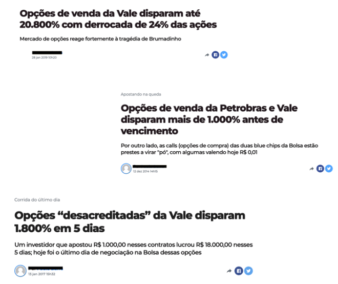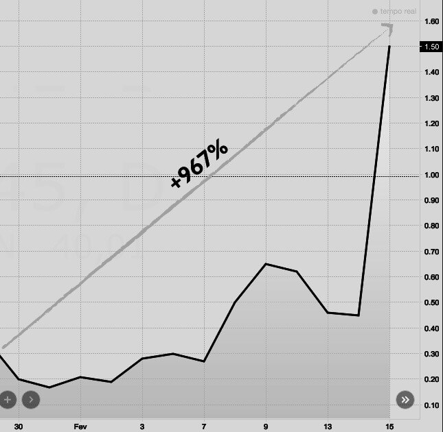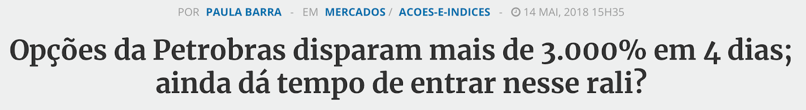 É comum verificarmos casos de contratos de opções cujo valor tenha disparado de forma abrupta.