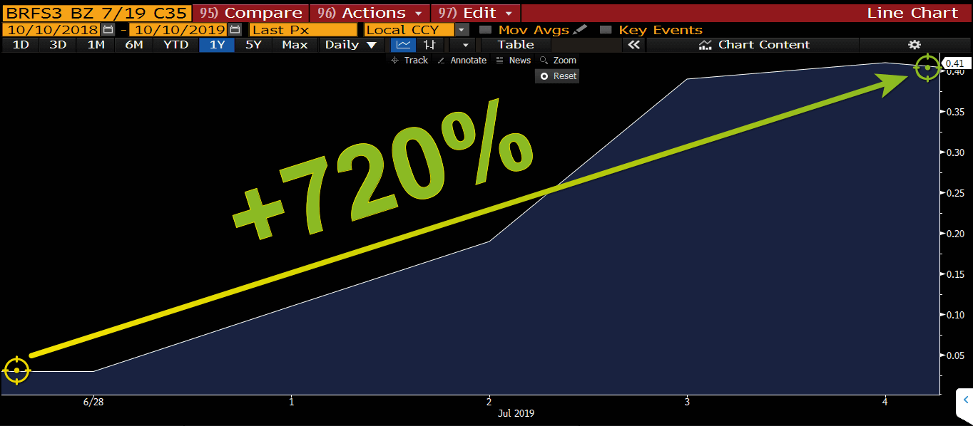 Isso significa preços baixíssimos para opções. Quanto mais baratas, maior o potencial de multiplicação desses ativos... essa acaba se tornando a melhor (e única) alternativa para se gerar multiplicações expressivas de capital.
