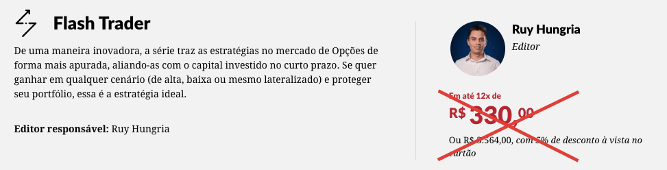 A assinatura anual do Flash Trader custa regularmente 12x de R$ 330,00.
