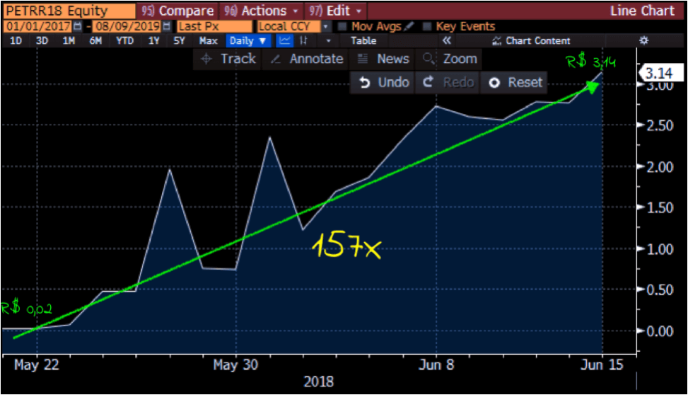 Ele comprou R$ 400 em opções de Petrobrás a R$ 0,02 cada.