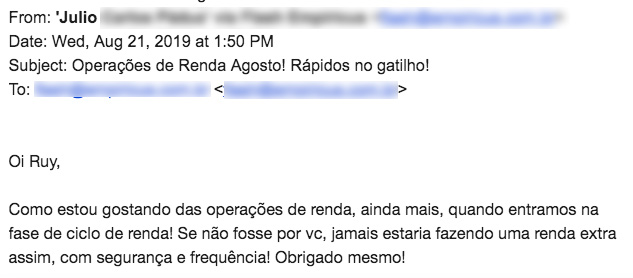 Essas operações servirão como um guia caso você queira gerar renda por conta própria e ir vendo na prática como é possível aumentar seus rendimentos com essas "comissões semanais".