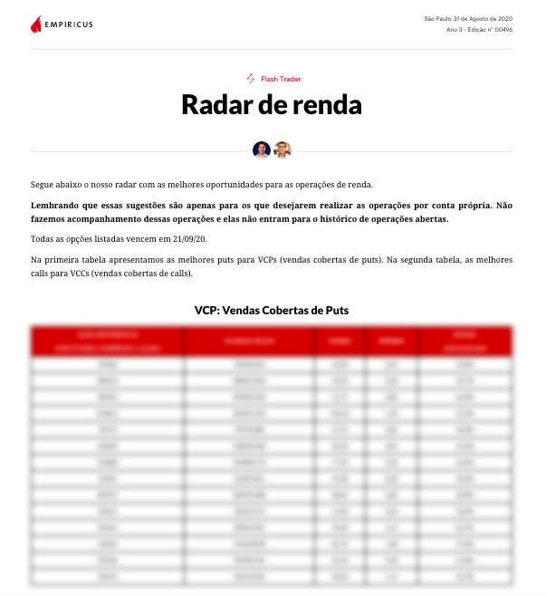 3) Radar de Renda: as oportunidades mais atrativas nas operações de renda para você gerar suas próprias "comissões", atualizadas semanalmente toda segunda-feira;
