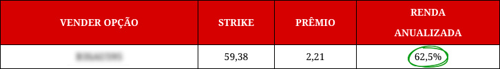 Nesse trade, você receberia uma "comissão" de R$ 1,34 por opção e caso a ação subisse até o preço de venda desejado, você a venderia COM LUCRO, e ainda embolsaria a renda imediata gerada pela operação.