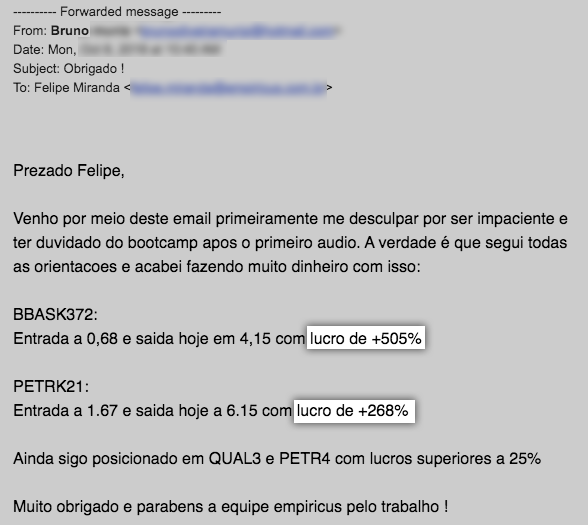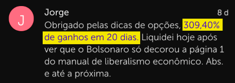 Muitos de nossos leitores, que ainda não conhecem essa ferramenta, não sabem que a maioria dos feedbacks positivos que colhemos aqui na Empiricus é de pessoas que simplesmente TRANSFORMARAM a performance de seus portfólios a partir do momento em que começaram a investir em opções.