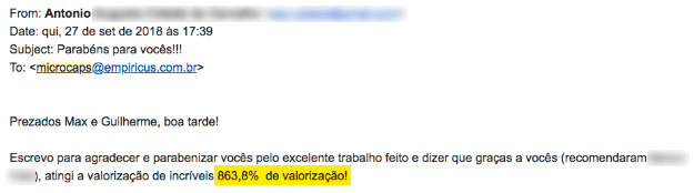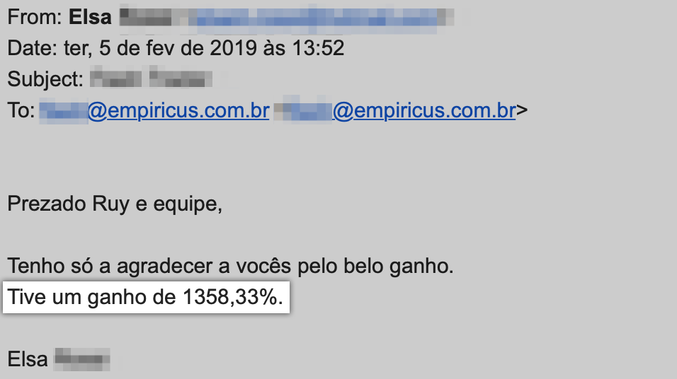 E, pra você ter ideia, o Henrique Florentino, responsável por esse nicho, na Empiricus, apresentou o maior resultado entre todas as carteiras da Empiricus em 2019.