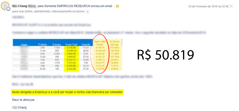 - CARTEIRA EMPIRICUS POR 12 MESES, COM COMBINADO DE LUCROS